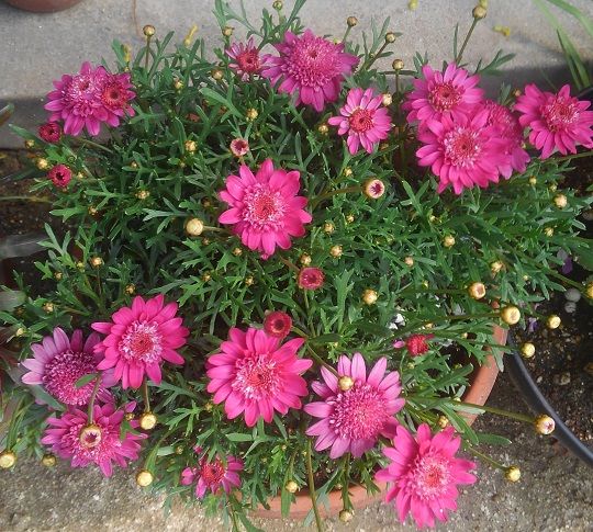 草花の苗/ボンザマーガレット:リーフ咲き(一重咲き)ラズベリー3.5号ポット