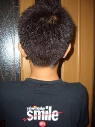 娘は、思い切って短くしましたが・・・(^^;)息子もあんまり長いと校則違反になっちゃうので・・・(;´Д`A ```娘が切りに行った次の日に行ったんだけど・・・C= C= C= ┌(;・_・)┘偶然にも、クーラーの工事をしていて、休みだった・・・(ーー;)お店の人にせっかく来ていただいたので、お詫びにって、トリートメントの無料券を貰って帰ってきました。・・・・・( ̄。 ̄ )...息子にトリートメントって・・・ゞ( ̄∇ ̄;)で、次の日に行ってきました。こんな感じ↓ ・・・・・( ̄。 ̄ )...あんまり変わり映えしないね・・・。・・・( ̄∇ ̄*)ゞ・・・・・( ̄。 ̄ )...Tシャツは、イエモンTシャツ