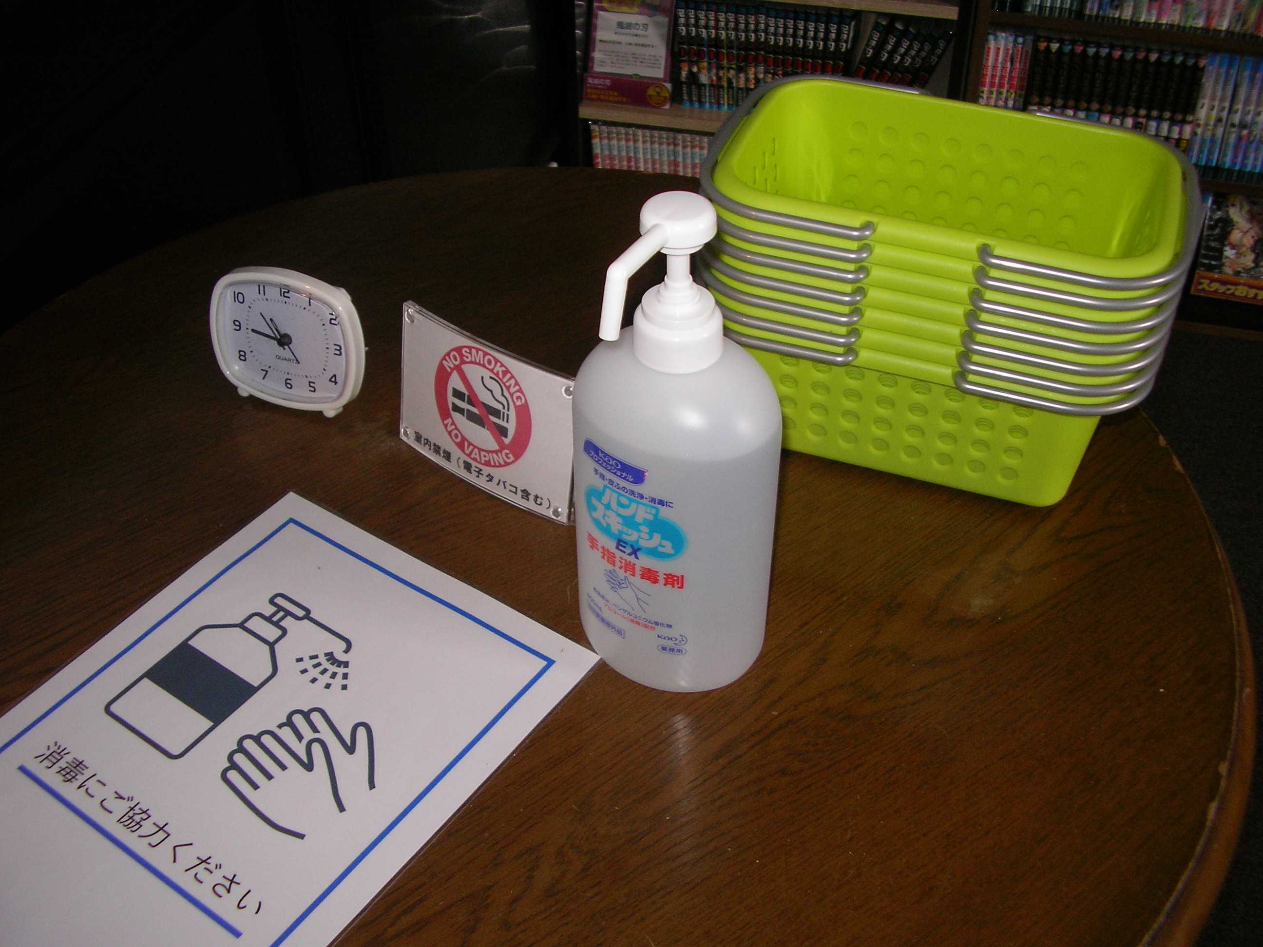 返却はフロントへお願いいたします(消毒の上で棚に戻しております)