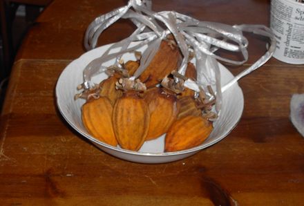 10月20日にナタマメのことを書きました。そのあと家の中でそのままになってたナタマメ あのころはずっしりーっ!と重かったのですが、いつのまにかカラカラ~~と音がしますんで今日はさやをひらいてみましたら中はこんなお豆が入っていました。ごぞんじですか~♪ たねをを植えるとネ 一晩でツルがぐんぐん伸びまして 見る見るうちに大きな木が雲の中まで伸びました。 ジャックは・・・ とイギリスのジャックと豆の木のモデルになったのも このナタマメだとか 英名はジャック・ビーンだそうですヨ でもね こここにあるこのナタマメにも いろいろ種類があるのです。 詳しくは米村花きコンサルトさんのHPにも紹介されていますのでご覧くださいねさあさあ~♪ もひとつ お茶でもおあがりながら どうぞ干し柿でのんびりと~♪ というわけにもだんだんいかなくなってきました年末ですが やっと干し柿にたどり着きました どちらもと~っても甘くて、柔らかかったんですよ。 いまのところ甘みは丸っこい柿でした。 でもね たる型柿のほうが干し柿らしい風味があるんですね~♪ あと少し干したらちょうどお正月です。 さあ今日は今から年賀状作成です。。。