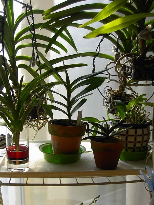 ↑棚の上段寒さの苦手なランから室内に取り入れました。温室はないのでこの半間の窓際がランのスペースです。外に残されているコチョウランはどうかな?こちらもそろそろ入れなければなりません。あっちこっちと動かしているので今見ると小鉢のラン 上と下にダブってました。こんなかんじでランは元気です春になればいくつか咲いてくれますよう~♪↓棚の下段
