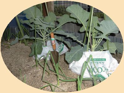 10月20日に植えたブロッコリーはいまこんなに大きくなりました!まだどのあたりがおいしくなりそうかわかりません・・・でもここまでくれば もうシメシメ・・^^;;白菜は~??といえば 寒くなってワタシが風邪ひいてほわ~っとなっているうちにこんなに虫が来た足跡がホレ! このとおり!!でもすこしずつ葉っぱも巻いてきましたヨ