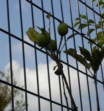 毎年冬になるとミカンを木の上のエサ台にさしておくとヒヨドリがにぎやかにやってきます。今年は木が茂ったまま見通しが悪いのかな??まだ気づいてくれません。 やぶこうじの実です。 きっととりたちからのプレゼント。 足元で知らない間に実をつけてるので かがんで見ないとみないとわからないアゲハはしっかりとキンカンにひっついっています。アゲハの仲間・クロアゲハの幼虫らしいです♪この画像が26日の朝です。27日にも撮影したらブレブレ!でした(>_