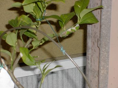 毎日お天気がめまぐるしく変わる中、学校も卒業シーズンが続きます。我が家の二男も 一昨日自動車学校合宿型終えて、昨日は大学卒業となり一つ、ヤレヤレ~ですが、3月中にお引越し、就職先の研修合宿、免許の学科試験、と続きなにかと気ぜわしいこのごろです・・・ さて、去年の11月にさなぎになったアゲハくんですが、羽化を今日か?明日かー?!と覗いておりますが、まだこのとおり。グッと胸を張ってえらそうでしょう~^-^)/知らない間に飛び立っては ちょいと寂しいので、大きくポリ袋で金柑の鉢を覆っております。 アゲハくんの旅立ちはあとどれくらいかなあ??さてさて 先日福岡ドームでラン展がありました。 小さな株ですが、咲き始めから、 だんだんと色が変わっていくんですよ。 画像左上が咲いて4日目、それから真ん中、 そして右上へと開花して日を経ています。 色の違いが見えませんけれど黄色みが強くなって その名前は「BLASSOLAELA.Yellow Bird」 軽やかにとびたちそうでーす♪