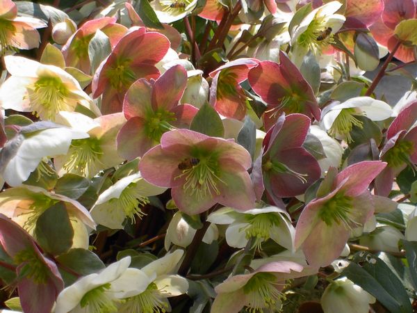 クリスマスローズ (エリック・スミス) がやっと見ごろになってきました。この「クリスマスローズ」という名前について 原産地ヨーロッパでは「クリスマスローズ」とよばれるのは、12月クリスマスごろから咲く原種の1種類 白い花の ヘレボルス属・「ニゲル」だけです。この時期に咲くから 別名「クリスマスローズ」といわれました。日本では ニゲルや、他の原種や、多く販売されている交雑種までをふくめてこの原種ニゲルの別名「クリスマスローズ」という名前で呼んでいます。日本国内でいっぱい販売されている交雑種(オリエンタリス系ハイブリット)のクリスマスローズ、 ヨーロッパの暖かくなったころ(=キリスト教の四旬節=レンテン節=4月のころ)花を咲かせ、 あちらでは「レンテンローズ」と呼ばれているものもあるんだそうですよ。これらの種を総称するには 本来属名「ヘレボルス」なのですが 標準和名として 「クリスマスローズ属」と定義されているんですって!!だから日本ではいまのところクリスマスローズと呼んで間違いではないそうです。我が家のヘレボルス・ニゲルはいつの間にか消えてしまいました。ニゲルは夏の暑さがやや苦手だそうです明日からまた真冬の寒さが戻ってくるそうです どうぞ お手柔らかに~古いデジカメより少し画素数の高いケータイで上のとは別のクリスマスローズの花の中を撮ってみました (アーグチフォリウス)花びらのように見えるのはガクおしべの付け根に小さく退化した花弁が見えます