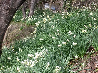 今日は近くの公民館で町内来期の役員決めがあり、少々不安な気持ちででかけました。任期は2年だし、出ごとはかなりの数だし・・・と途中、久しぶりに風のない穏やかなお天気の中、スイセンの群生ですここはサクラの名所 まだサクラはだいぶ先になりそうですがとってもよい香りが あたりいっぱい~♪ 行き道にこんないいとこ見つけて、 心配した話し合いも気持ちよく終わり、 ほ~ッ。。。このパソコンは古いノート型で もう1台のメインパソコンと並んで無線ランで情報を受け取っていたのですが、先日からケーブル接続にしてもらったら画面の切り替わるのが早い!!ノートを別の部屋には持っていけないけれど、それなりに快適です^-^)/この春から就職する下の息子が研修期間中うちに帰ってくる間、無線ランの受信カードは息子のパソコンにセットしてみようと セコセコ、、、10月に植えたハクサイは寒風の中、こ~んな出来上がりになりました^^;日のあたる2個は巻くことを知らずに青々としていてまるでほかの野菜のようです。 今晩は1個お鍋にしてみよう!! ちょっとかたいかなぁ~~