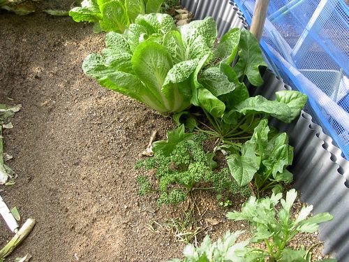 11月に頂き物の間引き菜を食べずに畑のすきまに(^^;)植えてたんです。ミズナは育ったところを刈ってはサラダへ、 また伸れば おみそ汁の青みへ~と、楽しんでいました。ミズナと一緒に植えた間引きホウレンソウはひっそり生き延びるだけ・・・のようす。 あきれるほどのんびりした成長ぶりでした。 ところがこのところの暖かさに、なにやら元気になってきましたー!!しかしえらくせまそうで 。。。 ハクサイの陰に隠れるよう 。。。 大きく育つように思えなかったから、こんな隙間に植えたんでしょうね。 2株だから やっぱりお味噌汁かな~ ブロッコリーは今日の黄砂をいっぱいかぶっていました。 黄砂を水で洗い流して収穫前の記念撮影です。 今日のメジロ君たち 「大きなステキなマンションね~♪ 私たちもいつかは住んでみたいわね~ ジュリ♪ジュリン」 「 。。。 」 さてメジロ君はなんとこたえたことでしょうね~???
