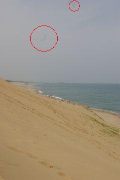 写真はこちらからどうぞ。よく見ると全ての写真にゴミが映っています。画像処理で消すことも出来ますが、今回はこのままにしました。なお、ドラえもんの絵は初めからありました。僕が描いた物ではありませんよ。一週間も経ってしまいましたが家族旅行最終日の日記を書きます。父親がどうしてもと言うので、早起きして前日と同じ道を通り鳥取へと向かいました。前日は込んでいた高速も流石に朝の八時ともなるとスイスイ。平均時速120kmというあり得ないスピードで一時間ほど進むことが出来ました。十時頃には鳥取砂丘に着き、無事駐車場も見つけて砂丘を満喫しました。日本で唯一沙漠がある所ですが、ハッキリ言ってこれは小さな沙漠というよりも大きな砂浜。まぁ、このサイズが一番良いですよ。あまりに広い沙漠だと遭難しちゃいますからね。適当に写真を撮り、近くで昼食を食べました。近くに砂の美術館があるということで行ってみましたが、美術館と言うにはちょっと虚しい。まぁ、入場料がタダなのだから文句は言えない。帰りも大して渋滞に巻き込まれず、夕方には広島に戻ることが出来ました。ところで、話が大きく変わりますが、デジタル一眼レフには弱点が幾つかあります。その一つとして、カメラ内にゴミが入るとそれがそのまま写真に写ってしまうと問題があります。フィルムの一眼レフだとフィルムをちょっと巻けばゴミは消えますが、デジカメはそれが出来ません。小さなゴミが入ると、以降撮る写真全てに移り込んでしまうのです。今回の旅行、どうやらゴミが入ったようで撮った写真全てに移り込んでいました。絞りを絞り込んで(つまり大きくして)青空等を移すとハッキリ分かっちゃうんです。このサイズだとあまり目立ちませんが、原寸大に拡大するとこんなに明白に見えちゃいます。デジカメ内には小さなゴミがあるんですが、普段はこんなに大きいゴミは入ってません。この時だけ何かの原因で入ってしまったのでしょう。もちろん清掃をするとゴミは取れるので帰宅後にさっさと取りました。ただ、撮っているときはゴミがあるか分からないので時々こういうゴミ付きの写真が出来ちゃうんです。最近では、電源を入れた瞬間に自動でゴミを振るい落とす機能が付いているカメラもあります。(僕のカメラの上位機種のK10Dというカメラもその内の一つ)でも、多くのデジタル一眼レフはそんな高い機能付いてないので、レンズを換えるとき細心の注意を払うしかないのです。あ、レンズを交換できないコンパクトデジカメ等は理論上、ゴミが入りません。(作りがあまりにも雑だと、カメラ内部でゴミが出たりカメラの隙間からゴミが入るらしい)