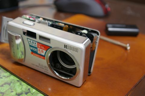 久々なので日記でも書いてみます。この一ヶ月ほどの間に色々ありましたよ。現在微妙な状態で進行中なので詳しくは書きませんが、いずれ報告書其の三を書くかもしれません。(一、二について興味があれば、2005年3月辺りの日記を探してみて下さい)まぁ、今年のクリスマスも例によって一人ですが……今年は例年よりも気持ちが楽かも知れません。で、今日の本題。留学中に愛用していたコンパクトデジカメのR2、実は今年のゴールデンウィークの時に壊れたんですよ。家族で鳥取砂丘に行った時に、父が誤って砂を入れてしまい……。レンズが出てこなくなり、ズームもAFも出来なくなりました。と言っても、未だに電源は問題なくはいるし一応写真だって撮れたりする。このまま捨てては勿体ないと思い、先ほど手にとって分解してみました。家にあった精密ドライバーで表のネジを外すと……意外にもあっけなく外ブタが外れました。写真でも載せておこうと久々にデジカメ引っ張り出してパシャリ。数年前のデジカメなので既に時代遅れかもしれませんが、中は精密機械そのものでした。で、あちこちいじってはみたのですが……なかなか直らず……。色々と触っているとビクッと凄い衝撃が……。両腕に痛みのような衝撃が走り、手に持っていたデジカメを机に放り出してしまいました。暫くは何が起きたのか分かりませんでしたが、どうやら感電したようです。もちろん分解中は電池を外していたのですが、直前に電源を入れていたのできっと残っていた電力でしょう。こんなに小さなカメラなのによくよく見るとあり得ないサイズのコンデンサが……。(コンデンサとは電気を貯めたり放出したりするダムのようなもの……らしい)このコンデンサでフラッシュ用の電気を貯めるのだが、多分その電気が原因だと思われる。更によく見てみると、このコンデンサ、ハッキリと330Vと明記されている。もう二度と感電したくないので、明日の朝くらいまでこのまま放置する予定です。流石に数時間も経てば放電されるだろうし、明日もう一度挑戦して何とか直したいと思います。