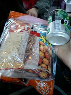 写真はこちらからどうぞ。今日は社員旅行に行ってきました。行ったのは本州と九州を結ぶ門司という所。観光バスを借りていくというので、片道三時間近い。暇するだろうと思い、mp3プレーヤーに本まで持って行ったのだが……。必要なかった模様。と言うのもバスに乗ってすぐ、何かが違うと気が付いた。外見は普通の観光バスなんですが、中に入ってみると後部座席が……。後部二列分の座席が横を向いていました。何というか……要はテレビのロケバス風なんですよ。で、僕が座った所もその後部座席。確かに会話は弾むけど……。バスが走り出して更に驚き。こんな物をもらっちゃいました。見ての通り、梅酒とおつまみのセット。梅酒以外にも缶ビールやら缶チューハイやらが一人一つ配られました。(飲めない人向けにお茶やらオレンジジュースやらもありました)時刻はまだ朝の八時頃なのに……結局みんなで飲んじゃいました。朝っぱらから飲むのは僕だけではなかったらしく、テンションはかなり高め。しかも一本じゃ終わらない。どうやら何箱も「お飲み物」が準備されているらしく、ガイドさんがしきりに勧めていました。(僕は一本で止めておきましたよ)大分飲んでいる方もいたらしく、サービスエリアに各駅停車して向かいました。(三十分に一回休憩取ったりして、全く前へ進めない……)それでも不思議なことに、何とか予定より十分遅れただけで門司に付き、一時間の自由観光をしました。ワイワイと集まる同期を尻目に、一人でさっさと観光に出かけました。しかし一時間で回る範囲なんてたかが知れていて、ほとんど写真も撮れませんでした。バスに戻って向かったのは門司から二十分ほどのホテル。そこで昼食を食べました。色々書くよりも見てもらった方が良いかも。左上の煮物らしき物、実はフグの骨のような物が入っていて、そこにくっついた肉が何とも美味しかった。(アラとか何とかっていうのだろうか……)これだけではないらしく、その後更に色々と出てきました。これが途中経過です。右上の方にフグの刺身が追加されてます。写真は撮りませんでしたが、天ぷらにアサリごはんにお吸い物も追加されました。もちろん瓶ビールもあり、しかもおかわりも自由でした。宴会場のような所で食べたので、途中でカラオケも入りどんちゃん騒ぎに近かったです。食後はホテル付属の温泉とサウナで汗を流し、気持ちよくバスに戻りました。バスでお土産を買える所にも行き、そこで色々と冷やかして帰ってきました。流石に帰りのバスは静かで、皆さんぐっすりお休みでした。喉が渇いたので一本だけチューハイを飲んだのだが……無駄に注目を集めてしまった。(みんなお茶やオレンジジュースだったのに……)まぁ、チューハイなので酔っぱらうことはないですよ。無事に広島に帰り着きました。今は、昨日買ったMacallanを飲んでます。ビールよりチューハイより、やはりウィスキーでしょ。