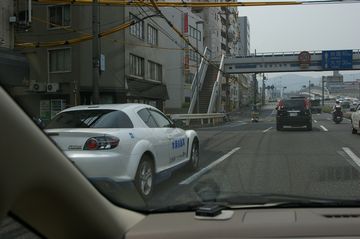 ゴールデンウィーク、帰省する会社の同僚がいる一方、ウチは親が広島に来るんです。この日、午前中に両親が飛行機で来ました。(最初は夜行バスで来ると言ってたのに、やはり飛行機の誘惑に負けたらしい)広島空港でレンタカーを借りたらしく、気が付いていたら家の目の前まで来ていました。そこから両親と車で広島市内へ。平和公園と原爆ドームへと向かったのだが、ちょうど開かれていたフラワーフェスティバルに巻き込まれてしまった。このフラワーフェスティバル、相当な規模で人が多すぎて歩けない。(結局158万人も集まったらしい)それでも何とか平和公園を通り原爆ドームまで辿り着いた後、近くでやたらに高いお好み焼きを食べました。(広島のお好み焼きは蕎麦が入っているせいか全体的に高め、しかもソースが多すぎるような……)食後は宮島へ行こうという事で、車で宮島口へ。途中でマツダの格好いい水素自動車を見かけたので、何枚か撮りました。RX-8という車らしく、どうやら日本で唯一のロータリーエンジンなるものが使われているらしい。驚いた事に、コイツ結構速かった……。水素自動車の癖に結構頑張っていて、ちょっとだけ明るい未来を垣間見ました。宮島口手前で渋滞に巻き込まれ、全く動かない車の列に三十分ほどはまりました。(後ほど分かったのだが、どうやら駐車場待ちの車の列だったらしい)ファミリーレストランの駐車場に図々しく車を駐め、宮島口まで十分ほど歩いていきました。フェリーで宮島に渡り、軽くウロウロした後さっさと帰りました。確かに世界遺産に登録されているだけの事はありますが、親は大して気に入らなかったようで……。(ファミレスに駐めた車の方が気がかりだったらしい)それにしても、宮島の鹿は何故、紙を食べたがるのだろう……。そういえば、前回行ったときは海の中にあった大鳥居もこの時は砂浜になっていました。紙を食べている鹿だけだと情けないので、載せちゃいます。何事もなく車を運転して、向かったのは予約のしてあった広島駅前のビジネスホテル。予算的に、この日はビジネスホテルになりました。一人一室ずつで、食事無し。夕食は繁華街まで歩いていって、ちょっと豪華で高めの物を食べました。行く途中に通った橋から適当に撮った一枚。肘を固定して撮ったしブレてはいないのだが、ISO800で絞りをF2.0にしたのでまるでピンボケしているようで画質が甘い。(レンズにもよるが、ピントは合っていてもFが小さいと画質がぼやけやすい)夕食後は大人しくホテルに戻り、やる事もなかったのでさっさと寝ました。