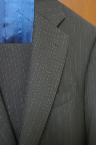 予言通り、今週も書きます、スーツネタ第二弾。予定日より2,3日早くできたので、金曜日取りに行ってきました。そうなんです、いわゆるイージーオーダーなんです。あちこちのサイズを測られ、色々と要望も織り込んでもらい……。もちろん、生地は自分で選びました。中外毛織という国産の生地メーカーで、一応Super100'Sの糸。ストライプが入っていますが、見ての通り2色。全体的には黒に近いグレーなので、結構フォーマルに仕上がっている。オーダーの良い所は全部自分で選べること。裏地は青のキュプラ素材にしました。(赤と青で迷いましたが、一面真っ赤は流石にまずいなぁと思って……)ステッチの糸はオレンジで、内ポケットの端にはグレーの生地を指定。結構地味ですが、あくまでもスーツですから……。ボタンですが、少し明るめの本水牛ボタン。(追加料金無しで指定できました)もちろん、袖部分は本切羽にしてるので、さりげなくお洒落……したつもり。写真はありませんが、パンツの方もちょっとこだわってます。ポケットを左右ともふた付き&ボタン付きにしてます。(時々財布を入れるので……)値段は書かないことにして置いて……。生地は国産だが、裁縫も国産。やっぱり作りが良いです。ボタンの裁縫もしっかりしているし、襟元がふっくらしている。(本バスではありませんが、それなりに良い芯地を使ってるようです)とりあえず、スーツはこのくらいにしておきます。第三弾は春夏物がセールに出される今年の9月前後(?)にでも書きます。自宅から駅まで、自転車なら10分以内なのに……。スーツのおかげで長時間歩くのはどうかとも思うが……。まぁ、いずれ慣れるのでしょう。(雨の日は古いスーツと自転車で……)