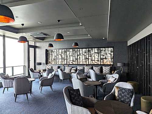 展望ラウンジへ行ってみる。広々としてる~。いらっしゃったのは読書してる方お一人。静かで良い。あらあらあら、冬に来た時は真っ青で美しかった別府湾がもやもやしすぎてるー!海側の部屋にしてなかったけどこれで良かったかも。19:30まで利用でき、20:00からは有料のバーとなる。なのでこの時間はソフトドリンク。グランドメルキュールはスパークリングワインとか飲み放題だったからどちらにするかは好みかな。翌朝も行ってみたけどやっぱり海はもやもやしてて全然青くなかった。
