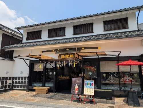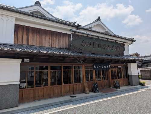天保14年(1843)創業、日田醤油の雛御殿。わぁ、こういうお味噌とかお醤油のお店っていいよね。入り口にはミストと風鈴。帰ってきて知ったけど九州の中でも日田っていつも高温。お店の中の奥の方に展示室がある。確か有料だったと思うけど時間がないので機会があったら次回に。大分でもさげもんってあるんだ。店内なかなかの人でごったがえしており、グループで入ってきた方々が注文ししょうゆソフト。人気なんだなぁ。気になるけど朝ごはんこのうえなく食べてるし無理。へぇ、ディップもあるんだ、にんにく、ゆず胡椒etcお醤油、お味噌のコーナーは撮り忘れた。高級な感じ。羊羹なんかもある。私たちが行った時は「ゆず羊羹」でそれがまたお上品で美味しかった♪我が家はお醤油はあまり使わずいただき物のストックがいっぱいあるので買えない。ディップも瓶だし買えるのはお味噌と羊羹。このお味噌はこだわり味噌、三年味噌、高級合わせ味噌と3種の食べ比べができる。全部美味しかったけど、こだわり味噌と高級合わせ味噌が好みだった。