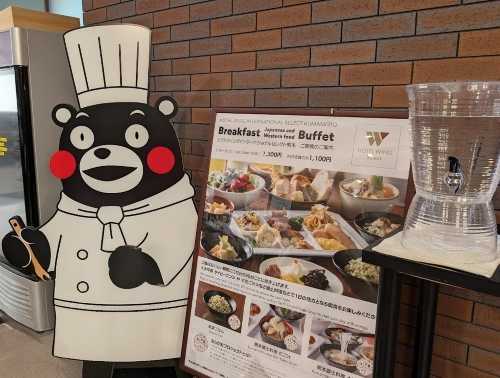 熊本のホテルは立地と朝食に地元のメニューがあるかどうかで選んだ。街中なのに温泉があるのも良い。やっぱりくまモンはあちこちに出没している。大阿蘇牛乳のプリンだなんて~♪写真写してないけど美味しかった♪やっぱり太平燕もはずせない。お店で一人分は食べられないけれどこうして自分で量が調節できて食べるのはとても便利。熊本のお味噌もなかなか美味しいと思った。椎茸のごま和えって珍しいかも。そして「南関揚げ」ってどーゆーことなのって思ったけれど気に入ったので買ってきた。ご飯は熊本産のヒノヒカリだった。国産米って表示・・・よそは国産米じゃないのかとちょっと不安になったりする。私の記憶の中ではどこでもこの土地のお米を使ってたような気がするけれど・・・。フォークとナイフを持ったくまモンの表情、これ初めて見る。レストランを出る時、受付の方が「ありがとうございます、行ってらっしゃいませ」と各々に言っていた。husもそう言われたのに私だけ「Thank you,have a nice day」そのまま通り過ぎたけど・・・どーゆーこと?