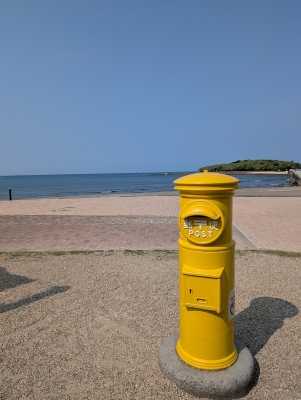 宮崎市にある幸せの黄色いポスト。確かに背景の海の色と通常の赤いポストの色は合わなかったかも。この辺り、青島は古事記によると豊玉姫と山幸彦の熱烈な恋文のやりとりの舞台であることから幸せの黄色になったんだって。現役のポストなのがすごい。ビュービューと日傘も髪も逆立ってる強風の中弥生橋を渡っていく。すごい湿気と風、なんだかつけまつ毛が浮いてきてる気がしてきた。ほっほう。これが鬼の洗濯板か。元々海面下にあった地層が地殻変動で表に出て来たとか。橋を渡ると青島神社の鳥居が見えてくる。誰もいないように見えるけどけっこうな人が行き来して人気のスポットみたい。あ・・・右目のまつ毛完全にとれた・・。えっと、こうなったら左もとっちゃおっと。? ? ?あれ、左のまつ毛がない ! ! !洗濯か・・・。あ、左のまつ毛、胸についてた! 通り過ぎる人に気づかれなかったことを祈る。