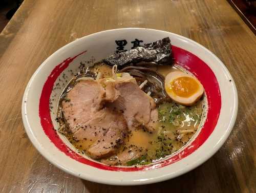 私はサイラーでお腹いっぱいで夕食いらないくらいだったけれど・・・。熊本ではラーメンを食べたい!という人がいて・・・。下通アーケードにある黒亭で熊本ラーメン。こざっぱりしたお店であっという間に満席、しかも多分日本人は我々だけ。外国人にラーメンは人気と知ってるけどこれほどまでとは。スープもチャーシューもこだわりの自家製。豚骨スープのはずなのにあっさりめで全然ギトギトしてなくて胃の弱い私には嬉しいタイプ。チャーシューもやわらかくて美味しいけど「ザ・肉」的なしつこさがなくて好感度高し。控えめサイズがあったのも嬉しかった♪♪ラーメンが食べたかって人も満足してくれてよかったのだった。
