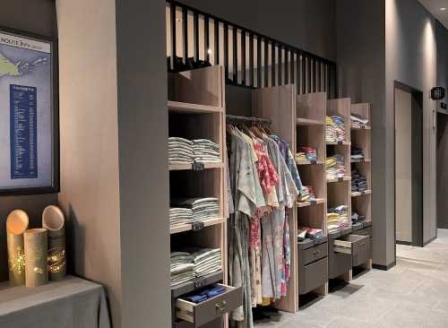部屋に行く前に浴衣選び。ちゃんと係の方がいらっしゃって案内してくれるのだけれど・・・。私の顔を見てはたとどうしたものかとフリーズされている・・・・。これは自分から言っちゃった方が親切、「日本人です」。とてもホッとされた表情になった。なんて話しかけて良いものか迷ってられたのだと思う。私はピンクの多い柄物を選び、husは作務衣を。新しめなホテルなので綺麗♪おおっ、お部屋もいい感じじゃない?ひろびろ~。ベッドの上にあるのは温泉に行く為のバッグ。クローゼットになってるのも雑然としなくて良い。へろへろだけどせっかくラウンジ階にしたのでラウンジ行くか。