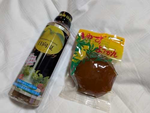 熊本で買ったあか牛ビーフカレー。黒牛が一般的だけどあか牛ってどんな牛のことなんだろう。ジャージー牛?まだ食べてないからお味はわからない。知覧茶たちと本場のぼんたん漬け。あろうことかスライスして食せばいいものを大きいままかぶりついちゃって・・。甘い、甘い、甘いったら。これは細切りにしてちょっとずついただく物かと思った。食べ終わるまで二人とも気づかず。