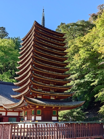 鎌足の息子が父を偲んで建てたのを室町時代に再建。