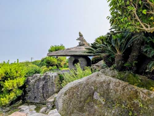 自然の石を組み合わせ島津斉彬が御殿からガス管をしいて日本初のガス灯篭だったんだって。