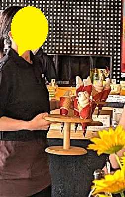 店内なかなかの人でごったがえしており、グループで入ってきた方々が注文ししょうゆソフト。