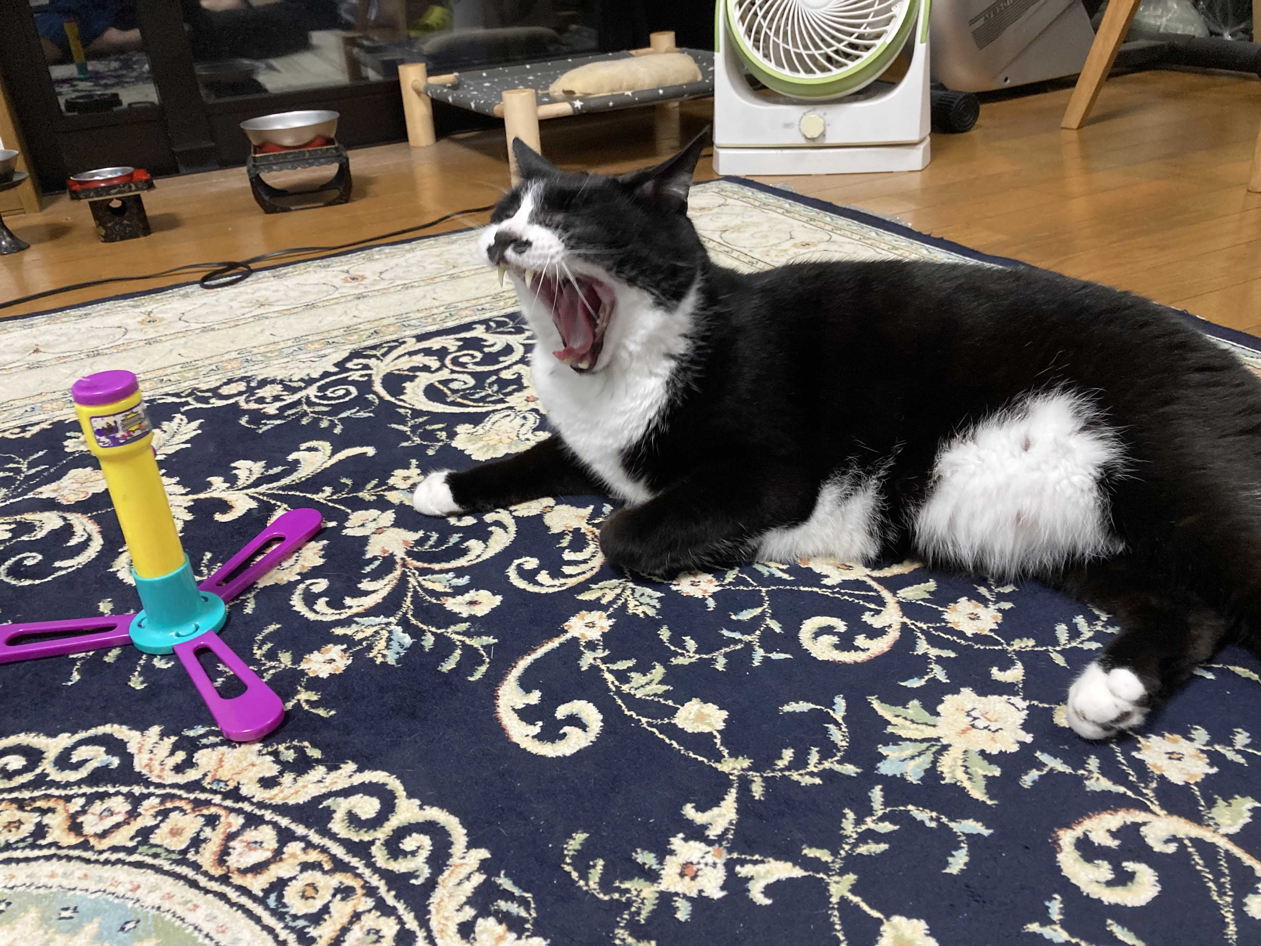 8月21日(月)〜24(木)は夏季休暇とさせていただきます。愛猫の漱石さんとまったりのんびりリフレッシュしたいところですが…多分バタバタ忙しく動き回っちゃうと思いまーす🎵ご迷惑をおかけしますが宜しくお願い致します!オモチャで遊んでる最中に大あくびをする6.2キロの漱石サン8歳