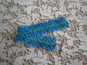 夏用に作ったブレスです。大好きなターコイズカラーとカプリブルー・エメラルドで海をイメージして作りました。この夏はコレで行く♪コレ付けて歩いている人見かけたら私です!あとこの間トップだけつっくてそのままだったのでチェーンをつけました。めでたしめでたしって今夜中の2時ですよ寝なきゃー!!