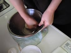 この間の日曜娘予定していた部活が中止になり急に何を思ったか「ガム作る」と言い出したTVで見ていたのかPCでガムの作り方を探して材料も用意し始めた!娘「ママ~!おいで~」と呼んでいるおいで~ってわたしもかい!強力粉を練って寝かして水でもみ洗いしていくうちに残るものコレがガム?というか食感を味わうのかな?私もしぶしぶ付き合ってやっていたけどもみ洗いしていく頃には私もハマッテ喜んでました。プニプニしていて・・・娘が最後に砂糖を加えて三つに分けて・・・!三つ?私もパパさんも食べることに・・・;味は^0^;ノーコメントですが実験結果もみ洗いして残ったグルテンに感動!とだけ言っておきます。娘は「今度は味付けに工夫をしよう」なんて言ってます。またやる気だよん><