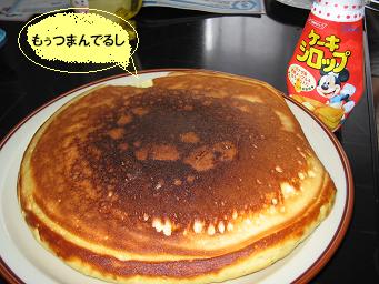 休日久々に部活が中止になりほっとしてぼ~としてるうちの娘(*^_^*)起きてきて朝ごはん見て「え~ホットケーキがいい」「ご飯今日は喉通らないよ~おねが~い」などど!!いいわよ~とは言わない私え~~~~っといいながらちょっとにやつく私(そうです。何か企んでる私です)ホットケーキの焼ける匂いっていいね~甘い香りが部屋中に~できた~!!ψ(`∇´)ψ ケケケッでかっ!ジャンボホットケーキだぞ面倒だから一気に全部焼いたわ♪厚みもあってふ~わふわどうだ~って感じで目の前に置いたらメチャ喜ぶ(*^_^*)//1/8位私が食べて・・・後は全部たべてたけど・・・お腹大丈夫~?