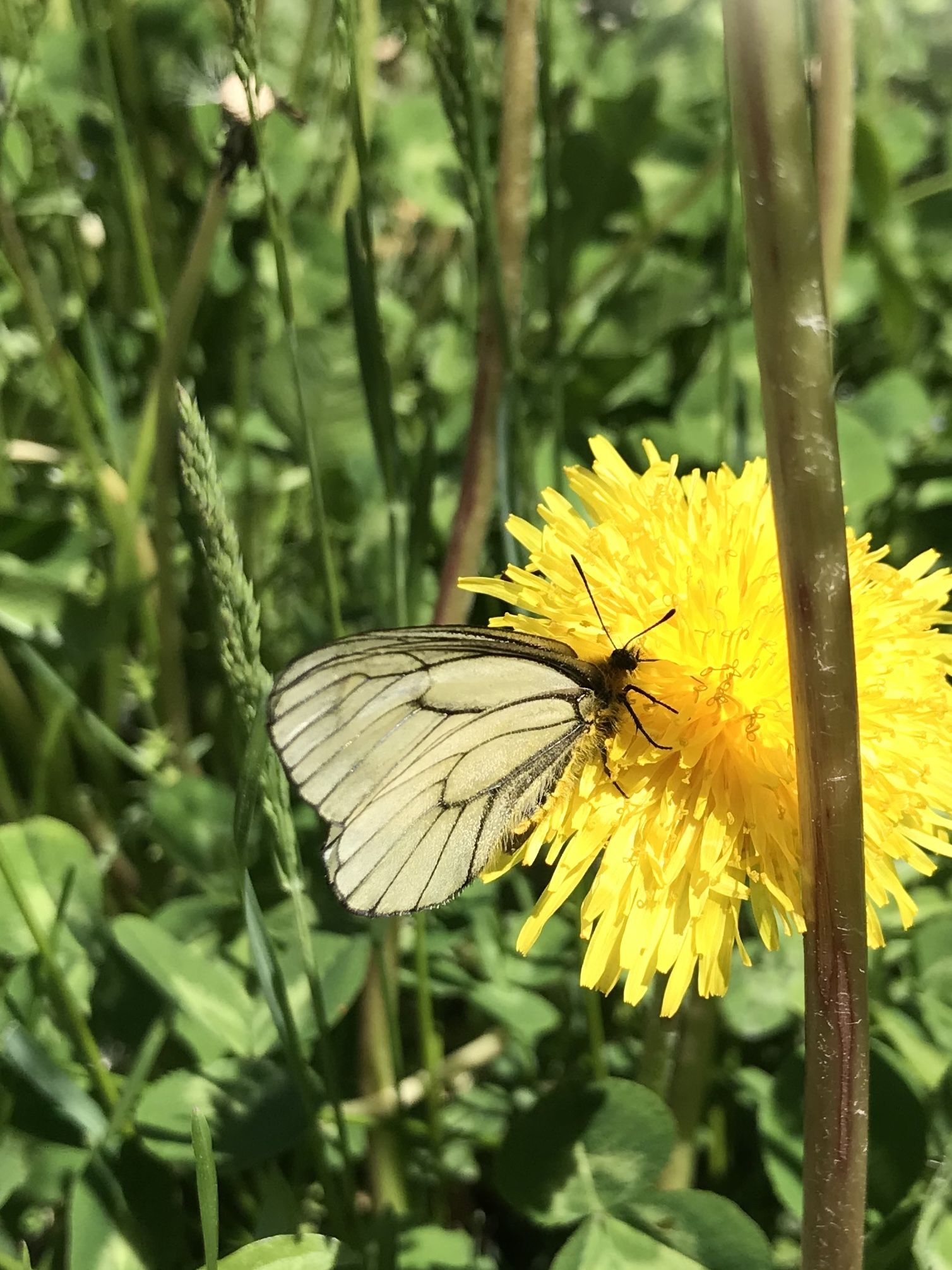 ヒメジオンも場所によっては終わっているようです 相変わらず白くないものもたくさん飛んでいますが少し擦れているようです タンポポにも吸蜜 こちらはちょっと白いかも