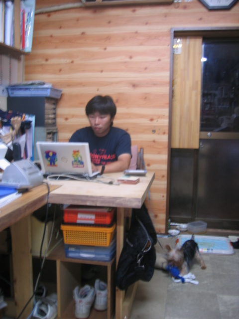 二回目オークション出品しました。ぜひぜひ参加して下さい。そしてひき続き三回目の作業に取り掛かります。次は大型商品を検討中です。下は仕事中の写真です。社長が照れるので、遠めのアングルになりました。ここでネットの作業をしてます。