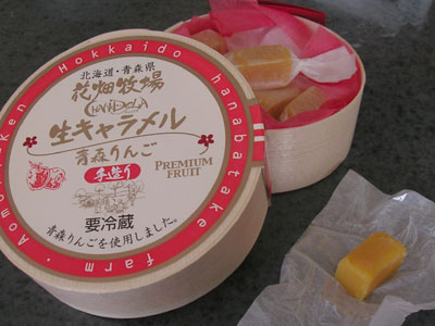 先日、野辺地→横浜方面の友達の所に行ったのでお土産に買いました。花畑牧場青森空港店の「生キャラメル青森りんご」お土産なのに自分で3個食べた(笑せっかくなので生キャラメルソフトも食べたよ。サッパリ系でおいしかったです。