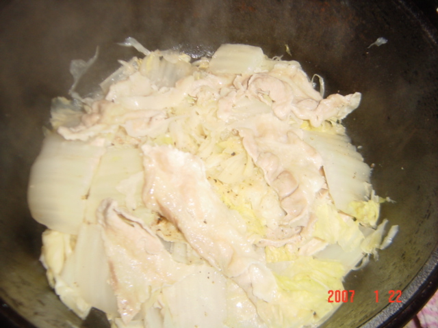 今日は暮れに買った「プロロジック ダッチオーブン」をはじめて使ってみました。みつくんさんが「簡単野菜のチーズ蒸し」を作ったとブログに書いていて、読んだら私が作る「イタリアン鍋」とよくにた料理でしたので、作ってみようと思い立ちました!!普通ダッチオーブンは焼きを入れなければいけないんですが、プロロジックはその面倒がありません。そこが気に入って購入しました。これがまた重いんです。でも、鋳物の厚みがあるからおいしく煮あがります。[決算セール 開催中]LODGE(ロッジ) Pro-Logic 10インチキッチンダッチオーブン私が買ったものと同じです。値段はもっと安かったんですが・・・今は完売してしまいました。また入荷するかもしれません♪イタリアン鍋まず、鍋にバターかオリーブ油を塗ります。たまねぎを敷き詰めます。その上にジャガイモのスライス(厚みは5ミリほど)を敷きます。その上にキャベツをふんだんに乗せます。その上にトマトとハム(ベーコンでもコンビーフでもスパムでも)も乗せます。そしてコトコト弱火に掛けます。2,30分煮て火が通っていたら、ピザ用チーズをピザに乗せるくらい振りかけて、蓋をしてチーズが溶けたら食べます。一瞬、火が通ってるの・・?って感じだったんです。普段イタリアン鍋を作るともっと野菜から水が上がってくるんですが、水を入れてないのに、キャベツがしゃきっとしているように見えるんです。でも、食べてみてびっくり!!水分やうまみが抜けていないんですが柔らかく煮ています。これには感動しましたよ~!!みつくんさん!これすごいね~。買ってよかった煮えてないように見えるけど、これでしっかり火が通っています。とてもヘルシーで、おいしく出来上がって本当に感動。子どもたちもおいしいおいしいってたくさん食べて、夫の分がなくならないかとハラハラしました~。しかも金欠メニューで経済的です。