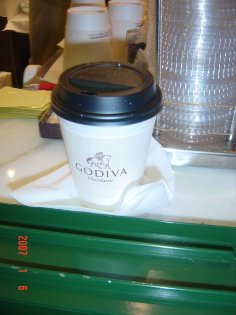 またまた日記が遅れています・・が・・元気です!!昨日は冬休みももう終わりということで、夫とデートしてきました。子どもが小さい頃は、夫と二人でデートなんて思いもよらなかったけど、最近はこんな余裕もできてうれしいです。娘は部活、お兄は風邪引きで延長していた彼女とのクリスマスディナーの予定でしたが、またまた悪天候により延長。ついてませんね~そんなお兄の哀愁をよそに、私たちは御殿場プレミアムアウトレットへ、GO!連休ですが、悪天候が幸いして道はスムーズでした。家から1時間ちょいでついちゃった。アウトレット、フリマ好きの私には、かねがね行ってみたかった魅惑のスポットです。初めて行けました~。混んでいたけど、駐車場もスムーズに。横浜みたいに、駐車料金がかからないのも、魅力的。事前にサイトにアクセスして会員登録すれば、クーポンをもらえるらしい。私も登録したのに、うっかり忘れてもうろくですな~。ジジ様ババサマのお手伝いで頂いた駄賃で、夫も私もお気に入りの服をみつけて買いました銀座などに行くと、超高級ブランドのビルの入り口には仁王立ちしたドアマン(警備員か・・?)が立ちはだかっていて、なかなかドアの中に普段着ではいるのは勇気がいりますが、(入ったこと無いです)アウトレットショップなら、子連れだろうとなんだろうと気軽に入れるところが面白いです。私は高級ブランドには興味が無いので、もっぱら洋服ばかり見ましたが、ロロピアーナというイタリアの高級カシミアブランドのカーディガンについた値札に、158000円とあり、そこから70%オフの札がついていると思ったら、50万円以上の品の70%オフと分かってびっくり!!・・・社会勉強になりました感動的においしかったのは、ゴディバのチョコレートドリンク。さすがに昨日は寒くって、冷たいココアにクリームが浮かんだのを飲みたくても飲めない・・・温かいドリンクもあるというので購入。500円でした。これが!!一口飲んだらびっくりのおいしさ「パパ!おいしいよ!」って言って、夫も一口飲んで「俺も買う!!」珍しいですよ。夫が甘いココアを買いに行くなんて。口の中いっぱいにゴディバのチョコレートが広がっていく、至福のおいしさ。うっとりですよ~。もし、御殿場行ったらぜひ飲んでみてください。一枚200円以上する小さなチョコを一枚食べるより、満足度高いです。新春恒例!ダジャレクイズ!この日記の中にダジャレが一つ隠れています。見つけてみてね。(景品はありません。)