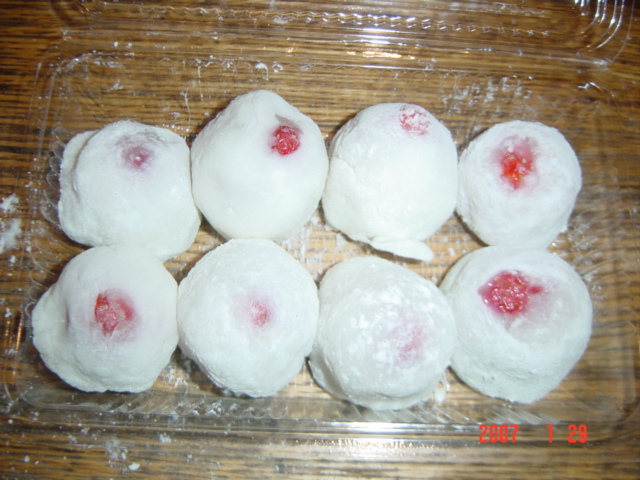 今日は娘といちご大福を作りました。私が作り方を習ってきて作ったのですが、きちんとメモを取っていなかったので、上新粉だったか、白玉粉だったか・・・スーパーの棚の前でしばらく腕組みして悩んでしまいました。そこへ友達が現れて、「生地には白玉粉よ!」というので白玉粉を買いましたが、作り方を教えてもらったのは、上新粉だったようです。つまり、家で作ってみたら・・・失敗。むきになって2回目を作ろうとしたら、娘に「検索するから」と諭されて、白玉粉の検索をしました。下記が見つけた作り方です。<材料>イチゴ大福8個分白玉粉……………………………………………120g砂糖…………………………………………………60g水………………………………………………150cc白あん…………………………………………200gイチゴ(小ぶりなもの)……………………………8個かたくり粉…………………………………………大匙5<作り方>白玉粉・砂糖・水を混ぜ合わせ、平らな耐熱皿(大きめのキッシュ皿のような感じの)に入れて電子レンジで約3分。一度取り出して、箸で均一にかき混ぜて、再び2分ほど。(レンジによって加熱時間は異なりますので、途中様子を見たほうがいいかも。私はほぼ半量で全部で3分ほどチンしました。)かたくり粉を敷いたバットに生地を移して熱いうちに8等分します。8等分した生地を丸く伸ばして(きっちり丸でなくてもいい)その上にティースプーン1杯ほどの白あん、逆さにしたイチゴを乗せます。手早く四方から包み込み、ラップで巾着状にくるんで開けばできあがり。イチゴは洗わずに濡れたペーパーでそっと拭くとひげが取れてきれいになります。洗うと水気で悪くなりやすいです。見てくれは悪いですが、お味は最高です。今日の先生は白あんがオススメだといっていました。白あんは上品な感じでおいしかったです。お兄も3個ずつ位ペロッと食べて、たいそう気に入っていました。夫も、うめ~!!と食べていました。正味10分くらいで出来るいちご大福。おいしいのでぜひ作ってみてくださいね~。上新粉(たぶん)は皿を加熱しおわって、片栗に落とすときにスムーズに落ちました。白玉粉は粘つきました。作るのは上新粉のほうが作りやすいと思います。一緒に行った友達に明日にでも確認してみようっと。いい加減なブログ内容でごめんなさい。バレンタイン限定 送料無料チョコいちご大福 15個入20070126祭10バレンタインDAY特別セット【送料込み】の大特価!Mサイズカスタードのいちご大福1個Mサイズ粒...くるくるワッフル「抹茶いちご大福」