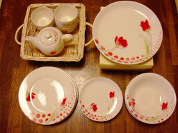 ちょっと貧血気味なのでひじきを使ったごはんを作ってみました~♪普段あまり「ひじき」って食べないのでレパートリーが全然思い浮かばない(○ ̄ ~  ̄○;)ウーン・・・ひじきの煮物とか正直言ってあまり好きではないし‥でもニンプには絶対に必要な栄養だから好きじゃないとかワガママも言っていられなくなりました(^^ゞで、栗原はるみさんのレシピからこのレシピを見つけ簡単そうだったので作ってみました♪ひき肉とひじきを炒め、しょうゆ、みりん、砂糖で調味するのでしっかりと味がついて炊き立てのごはんに混ぜるだけで美味しく頂けます♪おむすびにもいいそうです。ごはんに混ぜるだけならひじきもたっぷり食べれそう!今後は鉄分補給のために週1回は食べたいごはんです。ひじきは鉄分がたっぷり含まれているので有名ですが、鉄分が多い食材って意外と普段食べてないんですよね‥レバーだって苦手だしカキとかもほとんど食べないし‥手っ取り早く鉄分補給ならサプリメントもあるけどなるべくなら食材から補給したいものですよね‥あときな粉にも鉄分が豊富と聞いてホットミルクにも入れるようになりました。鉄分が摂れるものがあまり浮かばないので何かいいものがあればぜひ教えて下さいね!ドリンクとかでも手軽だな‥ ☆。・。・★。・。☆・。・★・。♪古い話でスイマセン(^^ゞ皆さん今年のお正月の「初売り」には出かけられましたか?そう!目的は「福袋」です☆私も調子が良かったので行きました!どうしても昨年買った「アフタヌーンティー」の雑貨の福袋(5千円)が今年も欲しくて‥でも1時間出遅れたらもうすでに完売‥; ̄ロ ̄)!!ショック!数も沢山あったので大丈夫だろうと甘く見ていたら‥昨年はまだ余裕があったんですよ~!来年は開店と同時に行こうかな‥そんな気合があればの話ですけどね。せっかく来たのに手ぶらじゃ何だから伊勢丹で洋食器の福袋を3千円でゲット!店員さん「1万円相当でお得ですよ~!」と言うので3千円ならいっか~と買っちゃった(^▽^)他はファンケルの健康福袋(笑)サプリメントや青汁、発芽米など‥ルピシアの紅茶の福袋も気になりましたが紅茶はしばらくお休み。洋食器の福袋の中身がコレです↓想像していたよりも素敵な花の模様の洋食器。全て5客セットで花の柄、色が全て違うんですよ~♪写真のは赤いチューリップ。華やかで気に入りました♪3千円にしてはかなりお得感がありました。大きめのティーポットもついてるし湯飲みもあるし‥今までシンプルな白い食器ばかりだったので新鮮です。 ☆。・。・★。・。☆・。・★・。♪今日はお天気がよかったのと暖かく気持もよかったのでだいぶ調子がよく過ごせました。朝はちょっとお腹が張って(ちと便秘で)痛かったりオエ~!(>o