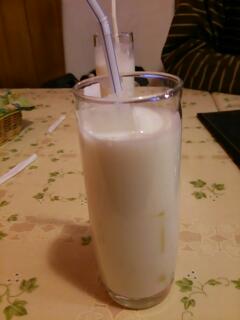ひとまずコース料理2500円を選択。まず飲み放題のドリンクはラッシー。ヨーグルトをうんと甘くした味がもうたまらん