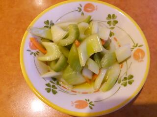 すると、セロリ特有の苦味はほとんどなく、ピクルスのやや甘酸っぱい味が引き立っていて、仕事後の疲れた体にとても美味しく感じた。