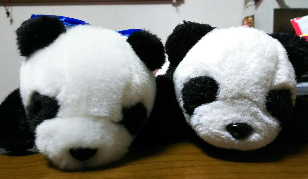 ちなみに座り型のパンダは、寝そべりタイプより更に輪をかけたかのようにブサイクになっていて、トイザらスのぬいぐるみソックリだった。