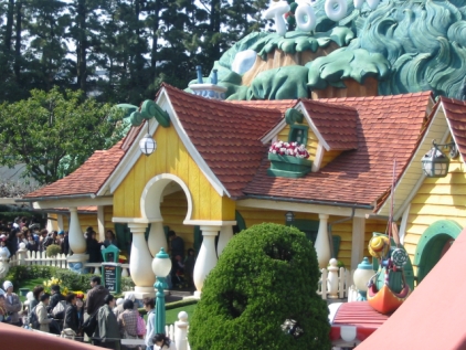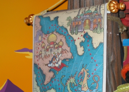 少しは空いていることを期待してシーに行ってきた。タワー・オブ・テラーやインディ・ジョーンズ・アドベンチャーあたりは早々にファストパスが売り切れるほどの混み具合だったが、他のアトラクションは比較的ゆったりしていたように思う。残念だったのはノーチラスギャレーのメニューが変わってしまったこと。3種の餃子が1種類だけになってしまったことは聞いていたのだが、今回行ったときには餃子そのものが無くなっていた。ビールのつまみになりそうなのはスモークターキーレッグくらい。美味しいけど、ちょっとつまみたい時にはチトなあ・・・。とか言いつつビールをかけつけ2杯。陽気が良かったしね。ひょっとして毒ギョウザの影響、、、なんてことは無いよねえ??シンドバッド・ストーリーブック・ヴォヤッジの出口にあるレリーフ。見づらいですがアラジンとジャスミンがゲスト出演してます。