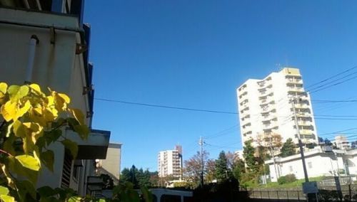 とある日の 青空が 良く晴れた 秋の早朝 きもちいい ご近所の お年寄りが 集まって ラジオ体操が 開始された グルメシティ 館ヶ丘団地店