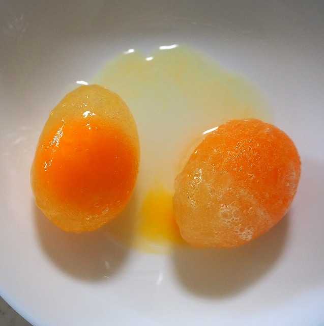 そしたら、奥の卵が凍ってしまいました。びっくり