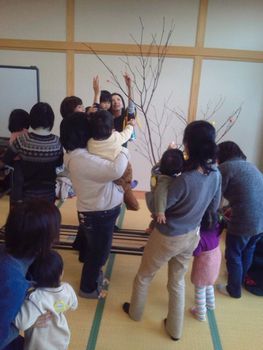 市から委託されて計画、開催をしている移動サロン今年初の本日は「わらべうたあそびとだんごさし」でした。カシオペイヤの店主でもある千葉先生にわらべうた遊びをしていただきました。わらべうたは子守のために小学生高学年くらいの子供が作って遊んであげたという遊びです。子どもが考えて遊ぶわらべうたは音域が狭く小さいお子さんでも無理なくうたう事ができます。千葉先生の優しい声に癒されます(*^^*)ととけっこうずくぼんじょほおずきばあさんうまはとしとしなど知っている遊びもありましたね(^^)わらべうたで遊んだあとはだんごさし5色の紙粘土をコロコロ丸めてみず木に刺していきます。順番を待ったり、お話や歌に耳を傾けたり小さいのにね。すごいなぁ(^^)次回の移動サロンは2月15日(水)大人気のお料理教室です。2歳以上の参加で20組限定ですのでお早めに(^0^)/本日のみず木は麓山ふれあい館に飾っていただいております。まるちゃんがお休み中なのでぷちぽかことベビーマッサージの会ぽかぽかがお送りしました(^^)/