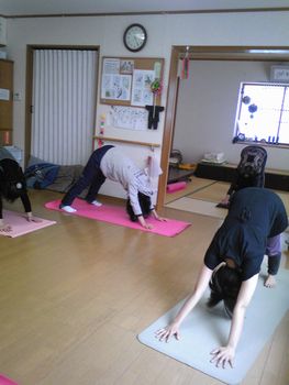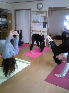 本日はお休みしたため、受付のNさんに写真を送ってもらいました。というのも・・・娘が日曜からずっと風邪ひきで熱が上がったり、下がったり、を繰り返し昨日まで欠席してました。いつものメンバーな感じの顔ぶれのようですね~てか これじゃ顔が見えませんけどね あはっ回を増すごとに、みなさん体も柔らかくなっているようです。寒いと体を動かさなくなってしまうのでこうして、定期的に参加してみるのもいいかも冬太り防止にもなるかもしれません結局また熱が上がり早退・・・午後からまたしてもです。空気が乾燥して、風邪をひきやすい天気が続いています。みなさんくれぐれも気をつけて下さいね。そろそろ行く準備しなきゃ ではまた~ まる