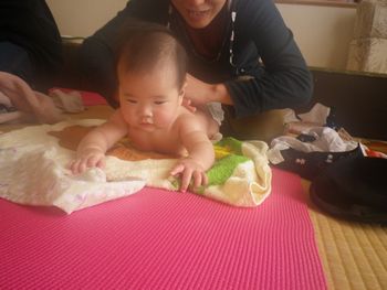 まるちゃんがお休みのためぽかぽかことベビーマッサージャーよしえがお送りします(^^)今日はそのベビちゃんDay3組のベビちゃんとママが参加して下さいました♪楽しく遊んで体が温まったところでマッサージ(お部屋がなかなか暖まらなくてすいませんでした(>