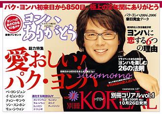 おはようございますっ昨日、別冊KOREALの画像貼りましたがあれは広告のようですっ昨日はあの画像しか探せませんでした本の表紙はコチラこの表紙のヨンハスキだなぁファンミDVDが続々と届いているようですねでも、私の元へはまだ来ていませんーーーーっなんだか・・ヨンハに飢えてる今一刻も早く見たいですっ配達のおじさーーん忙しいでしょうが私への配達急いでくださいっ