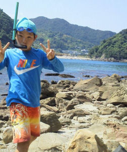 昨日のことなのですがあまりにもお天気がよかったのでまたまた海に行ってきましただって、このお天気!と景色!です宮崎に住んでてヨカッタ~と、実感する季節ですこの日は、ちょうど潮がよかったのでシュノーケルしながら娘と「ミナ」採りをしました息子は、ライフジャケットをつけて浮きながら釣りをしていました(笑)それをシュノーケルでのぞくと魚たちがエサを食べ逃げしているのが見られるのですよ!のんびりした釣りですよね~採った「ミナ」はクーラーに入れて持ち帰って、グラグラと茹でますこれをマチ針でチュルンと剥いて宮崎独特の甘めのさしみ醤油と液体ゆず胡椒をチロっとつけてパクっといただきますヽ(^o^)丿食べきらなかった分も剥いておいてザクザク刻んで甘辛い味噌炒めにしてミナ味噌にします(まだ出来てないので 写真はありませんが^_^;)キュウリにつけたりご飯に乗っけて食べたりしますミナ味噌にすると保存が効くので便利です~♪