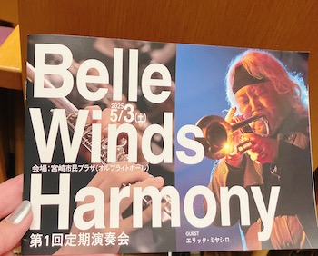 5月3日(土)『Belle Winds Harmony 』(ベル ウィンズ ハーモニー)の第一回定期演奏会に行ってきました若人の奮起により、結成された新しい楽団で宮崎国際ジャズデイのスピリッツを受け継いでるそうそして小中高の同級生で、父もお世話になった方が指揮者更に、特別ゲストがエリック・ミヤシロさんとくれば、トランペットを吹いてた身にとって心躍らずにはいられません贅沢なことに、オルブライトホールの3列目で身体中に音楽を浴びてきましたやっぱりナマの演奏は良いですね〜しっかり心に響きました大成功、おめでとう〜ちなみに、この日の私の取り合わせはこんな感じチェッカーフラッグ柄の着物にピアノの鍵盤と音符柄の帯を締めて五線譜柄の帯留でしたルンルン(古い?)の帰り道高校の吹奏楽部時代の先輩と同期に遭遇おおおおお!飲むよね〜(笑)久しぶりにおしゃべり出来て嬉しかったです誘っていただき、有難うございました別れた後は、「ぶたまん」で水ギョーズを食べ5/5で閉店するというお店に挨拶に行ってきましたお店がなくなるのは、寂しいですね
