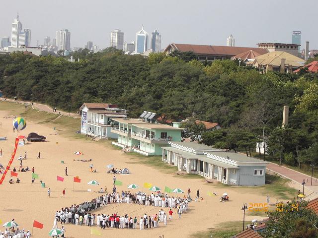 海水浴場の少ない中国の中でチンタオには第一、第二、第三がある。第四、第五がなくて、なぜか第六がある。つまり夏型リゾート地なのだが、ゴミが非常に少なく、犬の散歩も禁じている立て札を見かけた。従って犬の糞もなかった。市の清掃員をよく見かける。清潔な浜辺で大勢の学生達?の遊び方を見た。バレーボールを転がしペットポトルにあてていた。